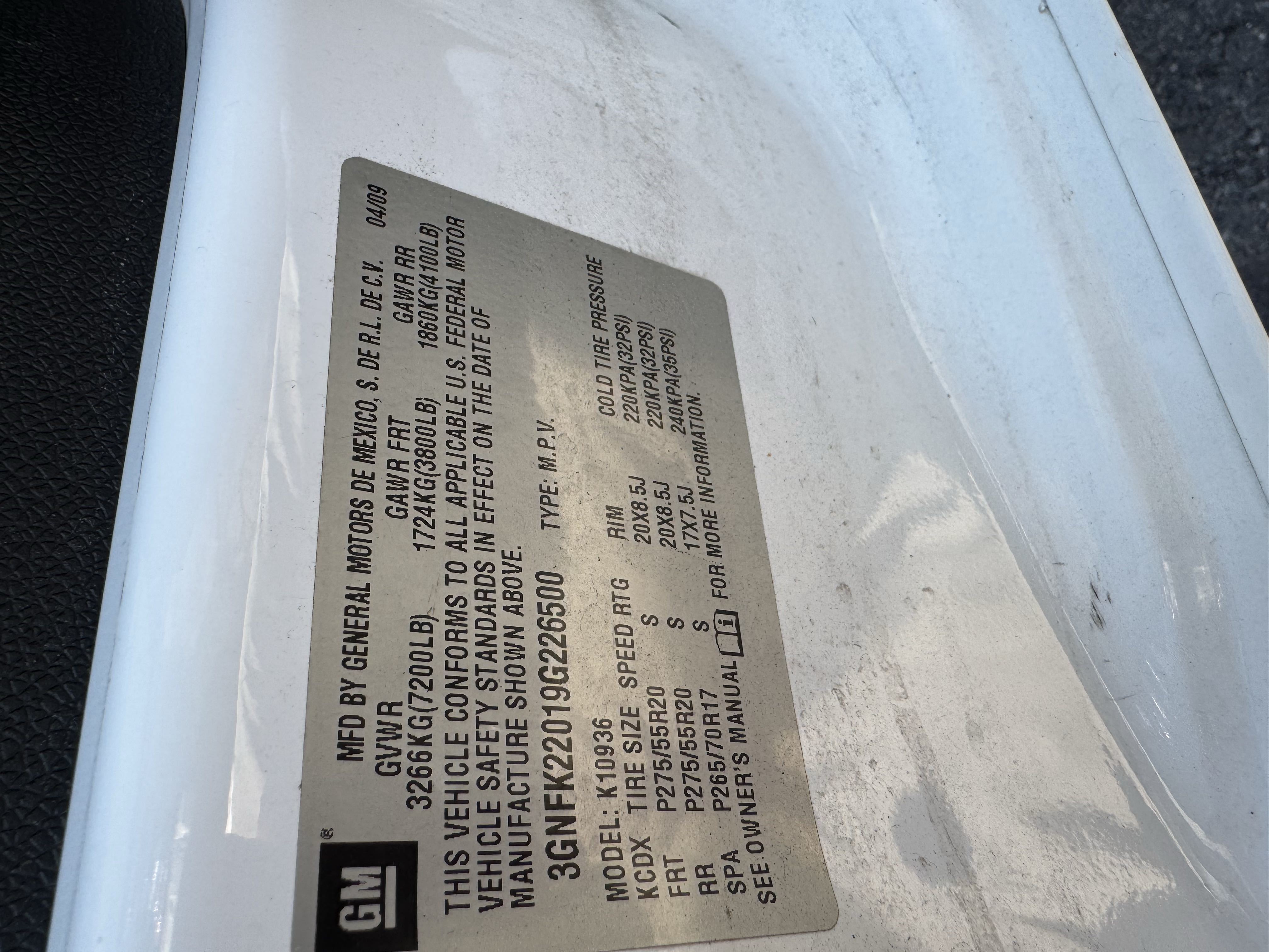 VIN: 3GNFK22019G226500
